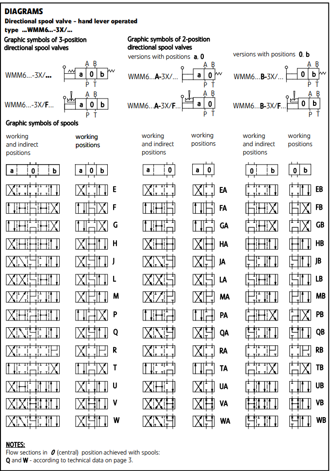Directional spool valves are intended for change in direction of fluid flow in a hydraulic system and thus it allows to change direction of movement of a receiver – mostly piston rod of a cylinder or hydraulic motor as well to use functions: on and off